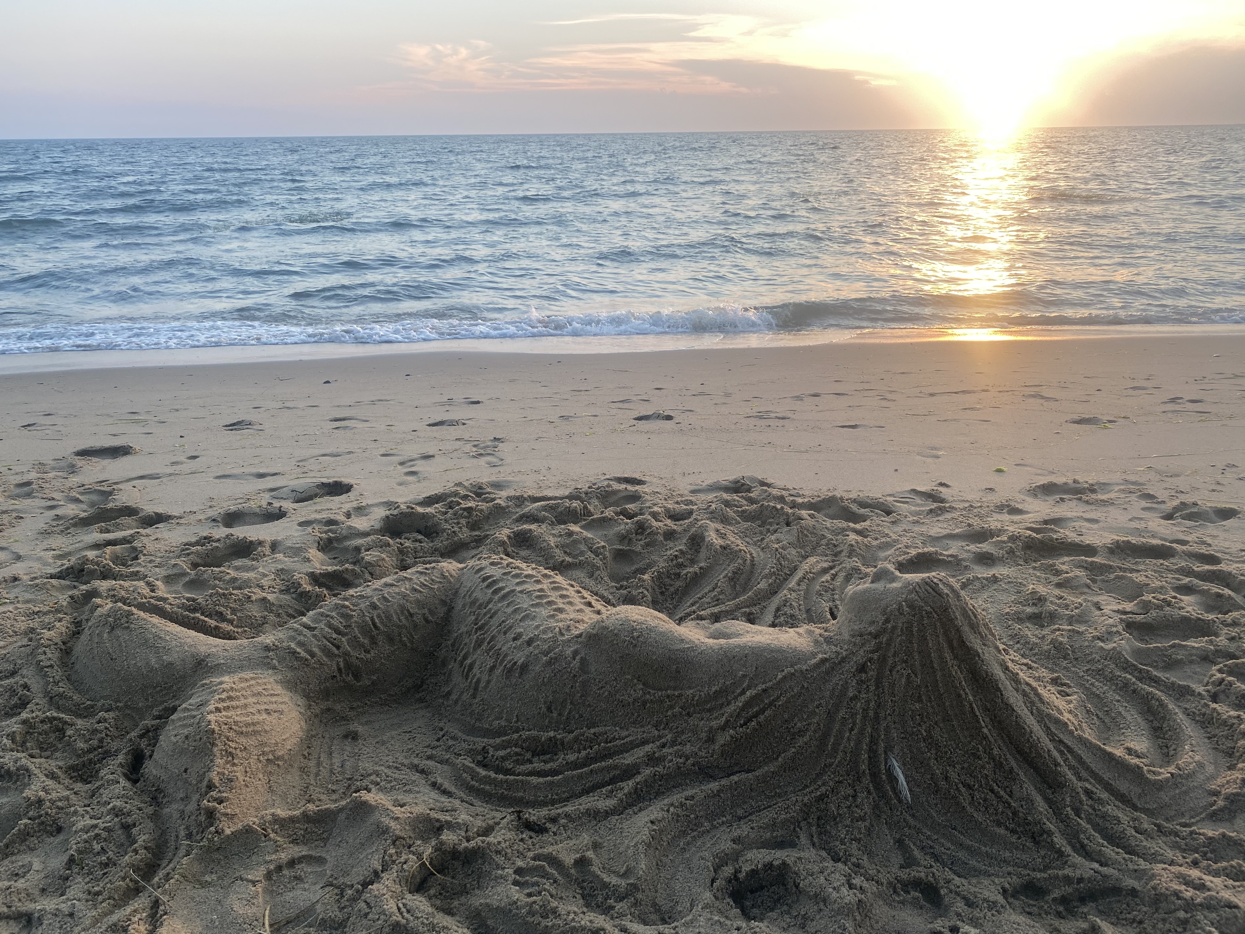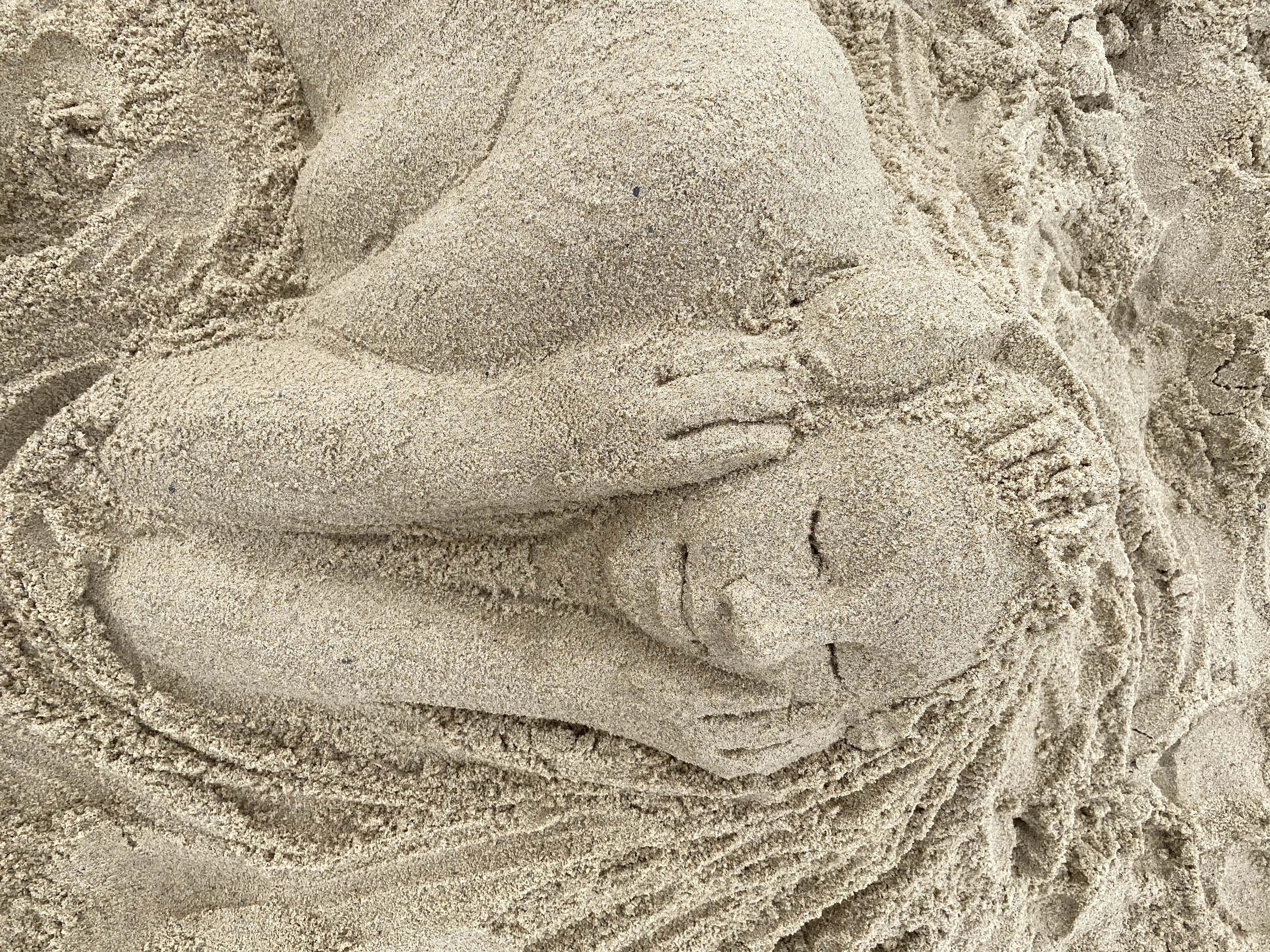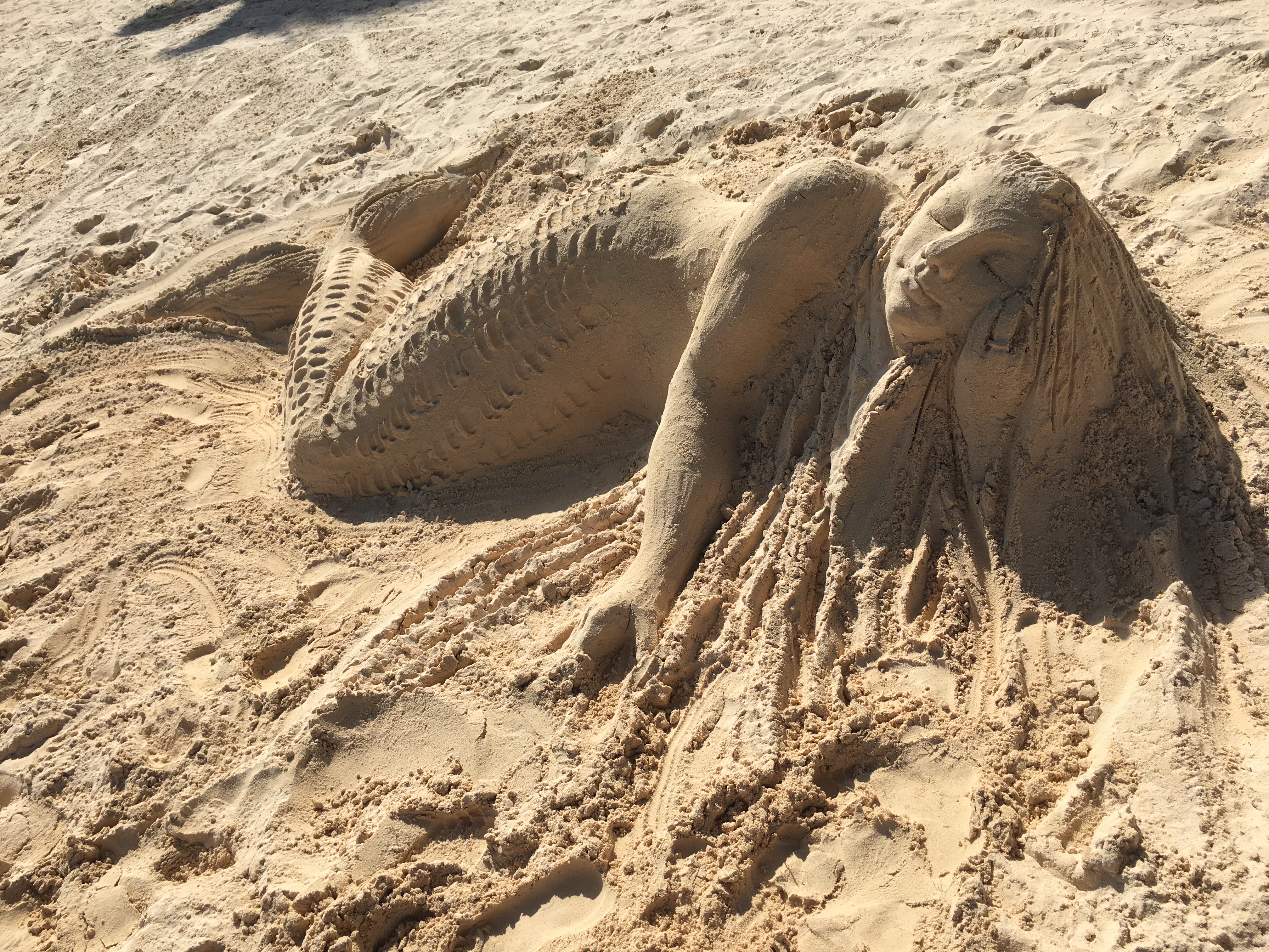 "There is something about sand, ocean, sunsets and the mystery of mermaids that never ceases to inspire me. Add this to a background as a figurative artist and a love of the element of surprise, and you will understand my sand sculptures and the photographs I take to document them. These fleeting creatures come into being for a brief moment before disappearing into the water at high tide. The resulting photographs are the only concrete proof of their existence. Although beaches and sunsets have been photographed many times, by countless people, the ephemeral nature of my sand sculptures make for unusual photographs as they stop time, capturing a moment that will never return."