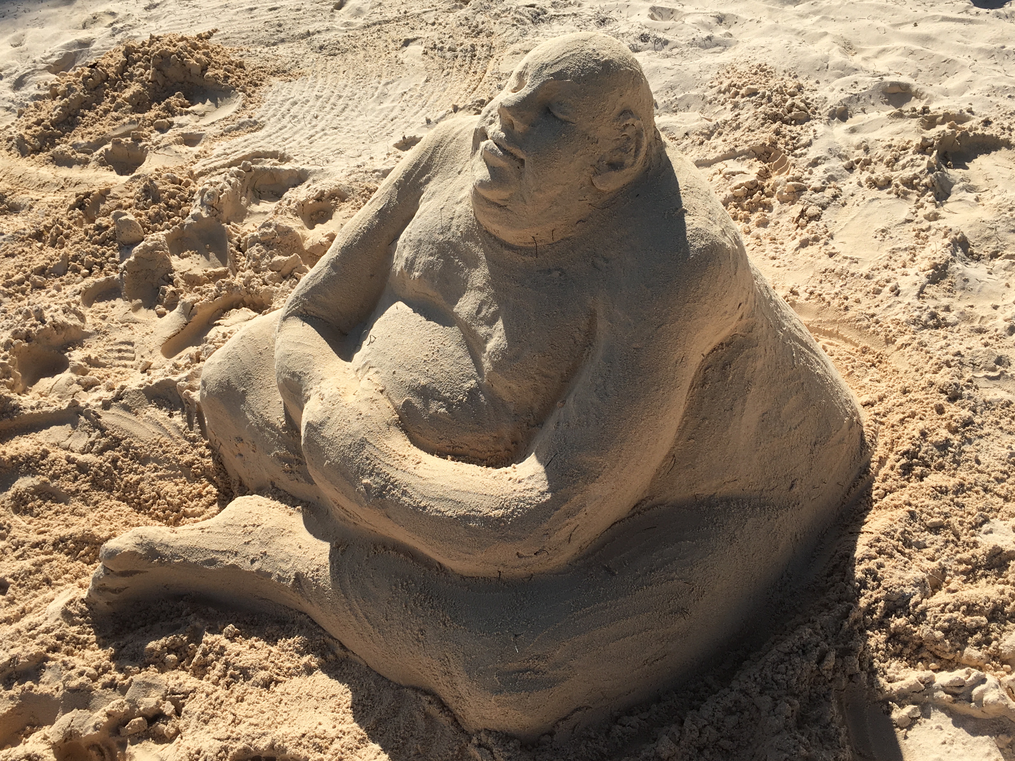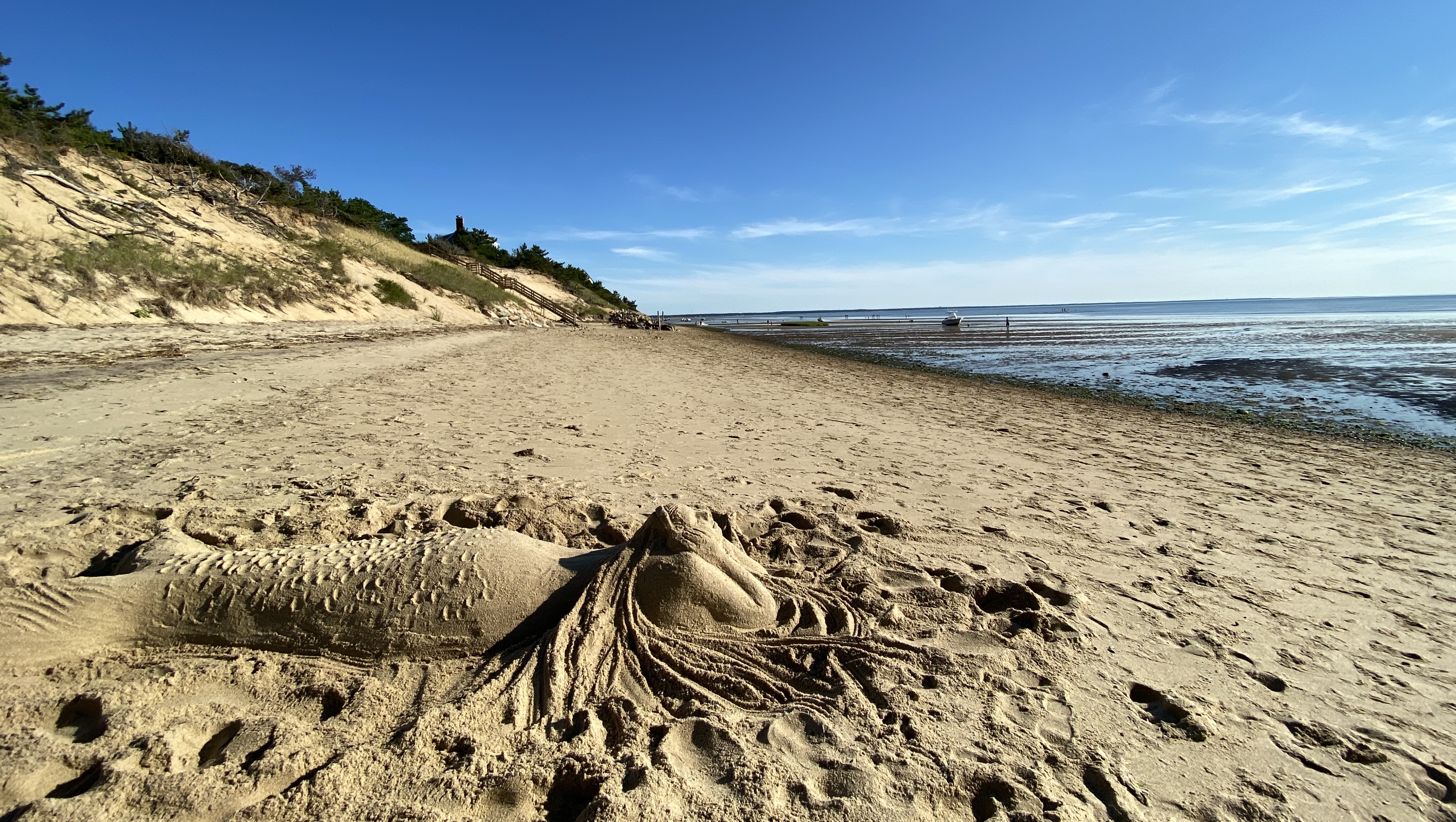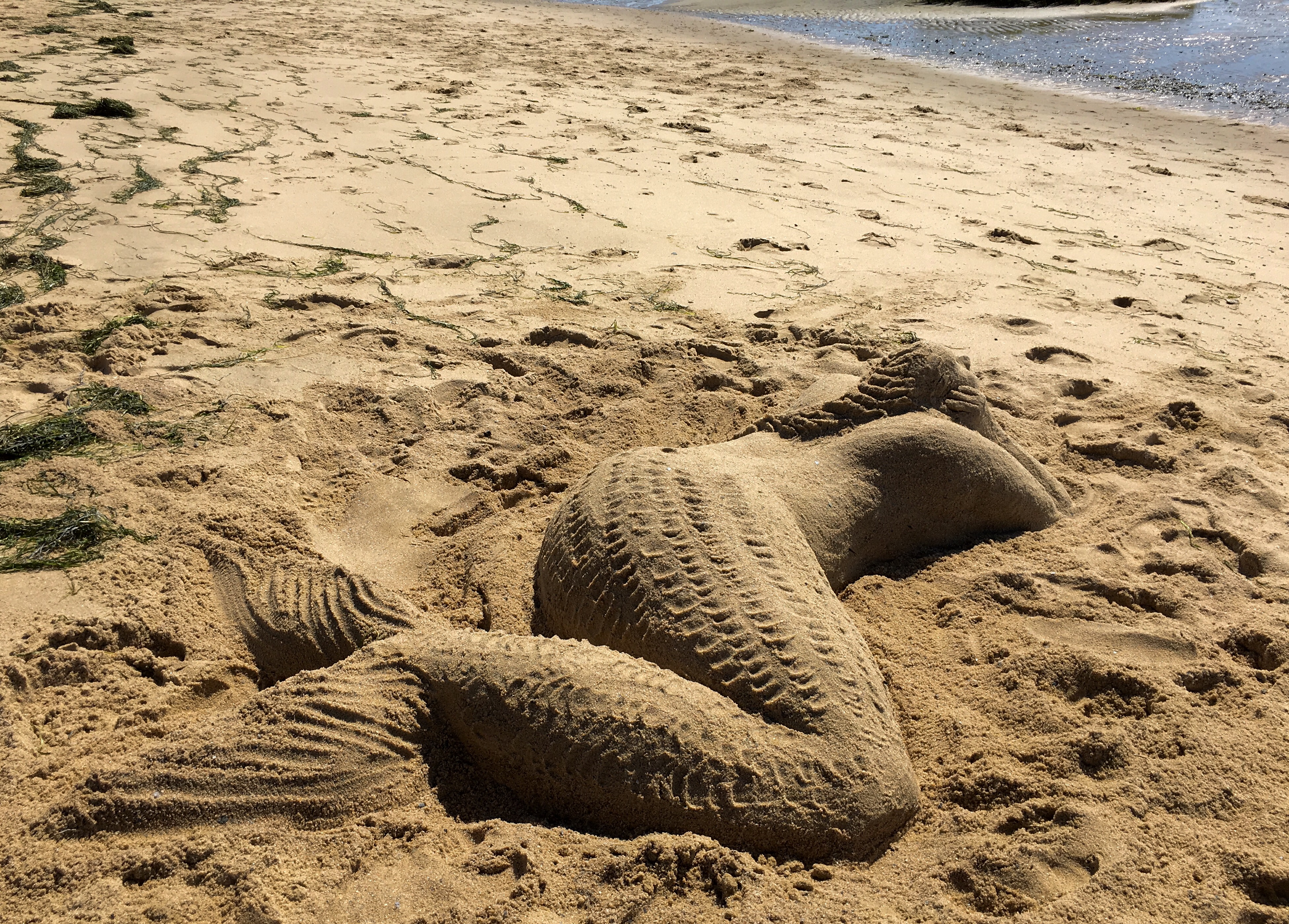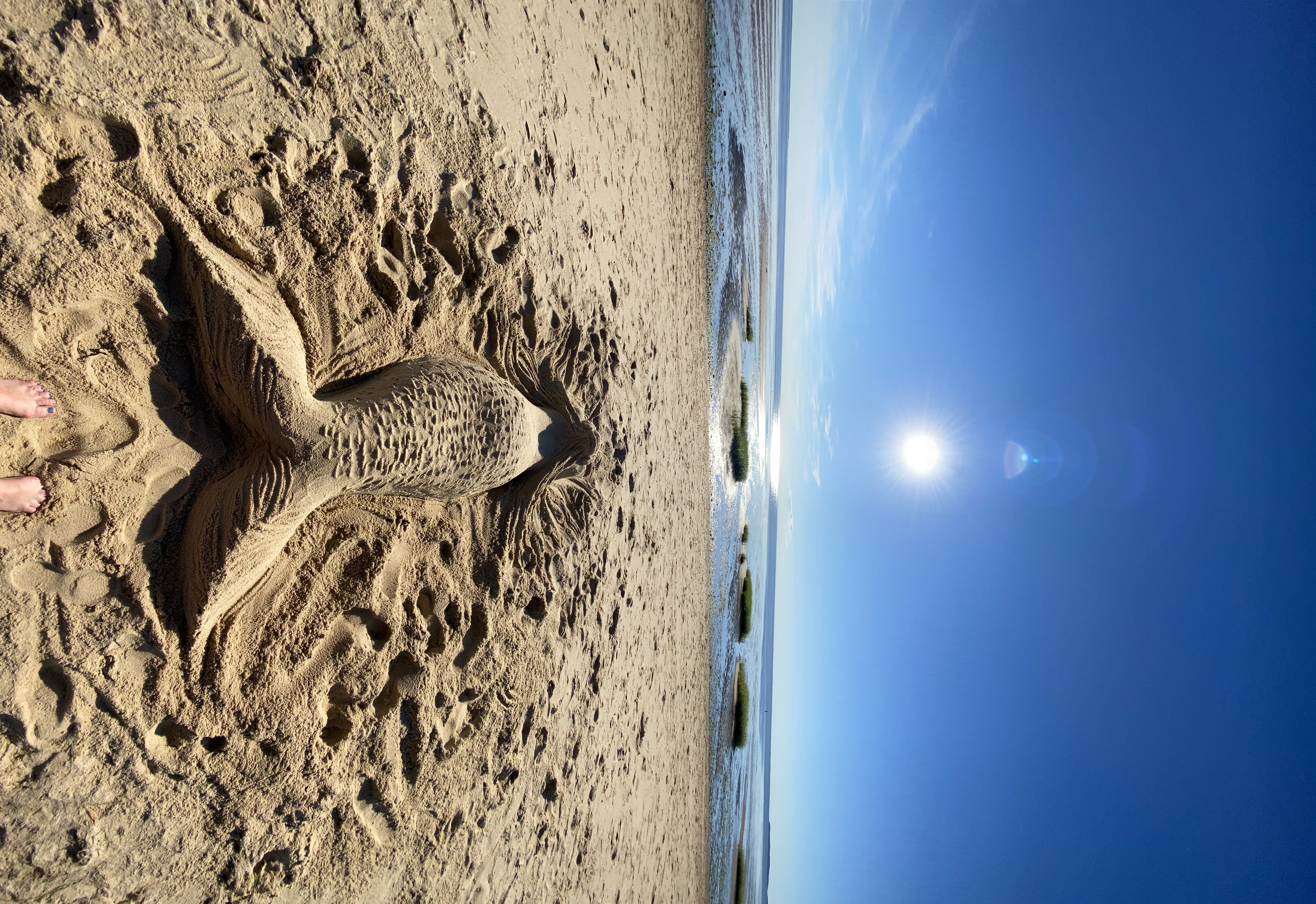 "There is something about sand, ocean, sunsets and the mystery of mermaids that never ceases to inspire me. Add this to a background as a figurative artist and a love of the element of surprise, and you will understand my sand sculptures and the photographs I take to document them. These fleeting creatures come into being for a brief moment before disappearing into the water at high tide. The resulting photographs are the only concrete proof of their existence. Although beaches and sunsets have been photographed many times, by countless people, the ephemeral nature of my sand sculptures make for unusual photographs as they stop time, capturing a moment that will never return."